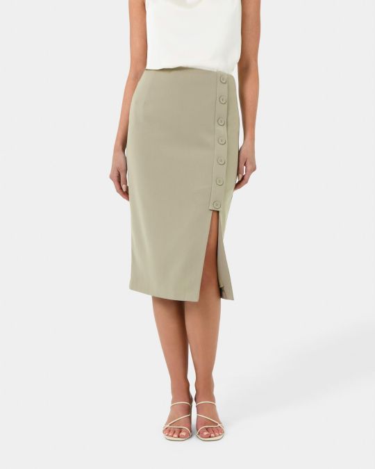The Ace Side Button Skirt is a versatile and chic addition to any wardrobe. Its unique side button detailing adds a modern twist to a classic silhouette, making it perfect for both work and play. The high-quality fabric and impeccable tailoring ensure a flattering fit that will have you feeling confident and stylish all day long. Elevate your look with this must-have piece that effortlessly transitions from day to night.