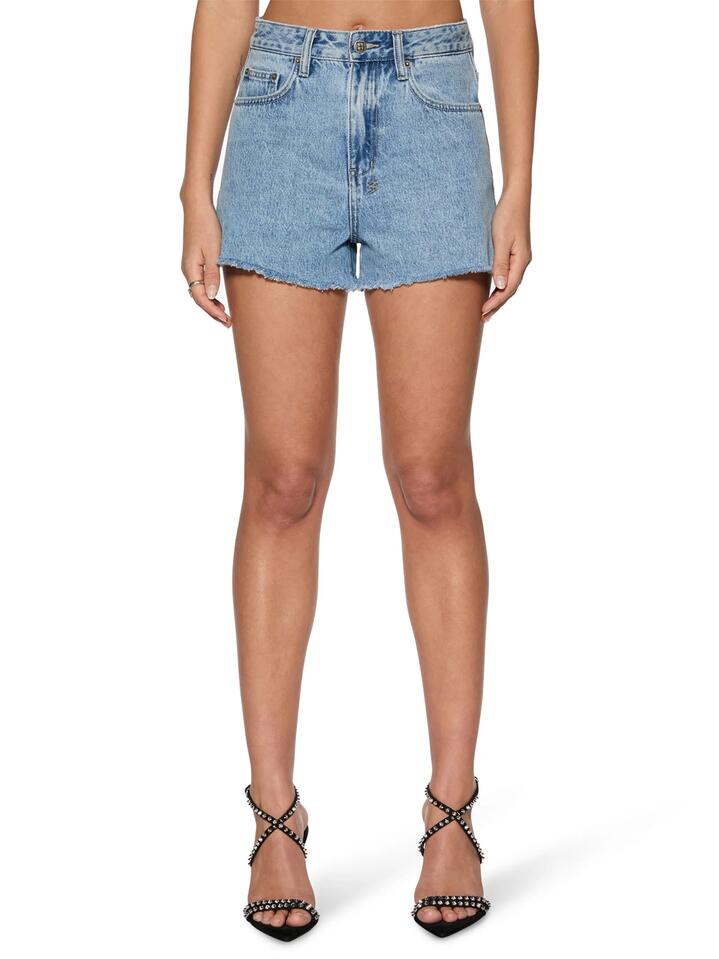 Made from premium rigid denim High-waisted cut-off short with classic five-pocket detailing. Designed with anti silver branded hardware, a raw-cut hem and side splits. Material: Deni (100% Cotton) Sizing: This garment is a slim relaxed fit and our model is wearing a size S.