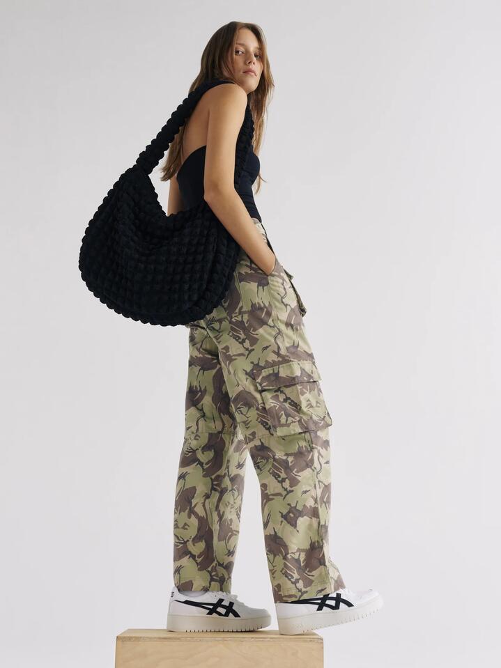 The Easy Cargo Pant is the perfect blend of style and functionality. With its wide leg design and camo print, you’ll stand out wherever you go. The spacious pockets provide ample storage space, making it ideal for anyone on-the-go. Complete with front and back pocket detailing, these pants are a must-have for any fashion-forward individual. Stay on-trend with the branding on the back of the garment. Material: Cotton.